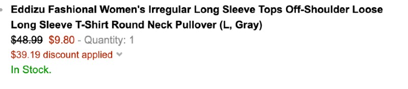 Amazon.com tiene esta Blusa Eddizu Irregular Long Sleeve a solo $9.80 (Reg. $48.99). Aprovecha y pide las tuyas antes de que se agoten AQUI. De su precio regular de $48.99 las tienen en oferta y cuando utilizas el código 804X5E54 al momento de hacer el checkout te ahorras $39.19 y terminas pagando solo $9.80. El envío es gratis con Amazon Prime o realizando una compra de $25.00 o más. No dejes perder esta super oferta!!! Si te interesa esta oferta la consigues AQUI. Esta oferta es válida mientras duren o hasta las 11:59pm del 01/19/2020.