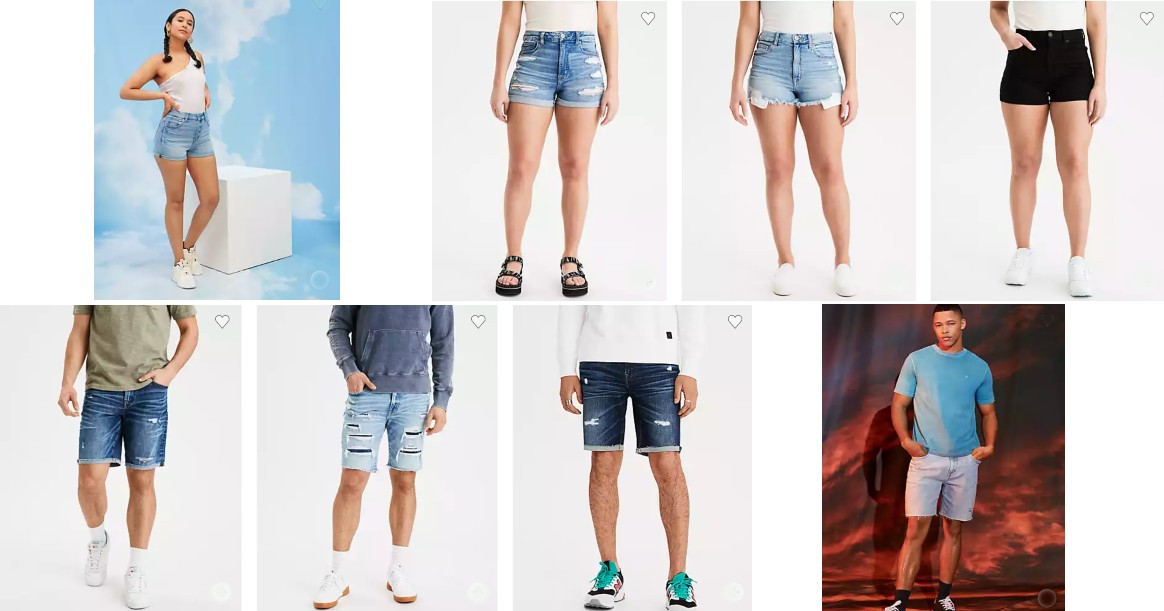 AmericanEagle.com tiene Pantalones Cortos para Hombres y Mujeres en oferta BOGO. Compras 1 y obtienes 1 GRATIS. No necesitas código promocional. Solo agrega dos cortos a tu carrito y el segundo será gratis! Los precios comienzan en solo $ 34.95, por lo que solo cuesta $ 17.47 por par. ¡Este es un gran precio para esta marca! El envío es gratuito en ordenes de $50 o más.
