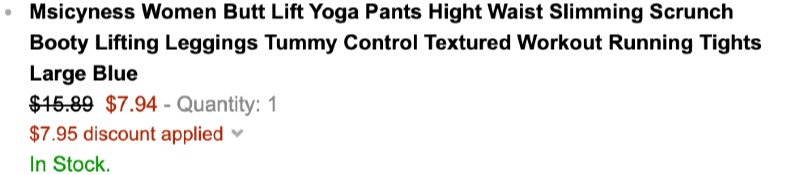 Amazon.com tiene los Pantalones Msicyness Workout Leggins a SOLO $7.94 (Reg. $15.89). Aprovecha y pide el tuyo antes de que se agoten AQUI. De su precio regular de $15.89 los tienen en oferta y al usar el código 507796CW al momento de hacer el checkout, te ahorras $7.95 y terminas pagando solo $7.94. El envío es gratis con Amazon Prime o realizando una compra de $25.00 o más. No dejes perder esta super oferta!!! Esta oferta es válida mientras duren o hasta las 11:59pm del 01/29/2020. Aprovecha este 50% de descuento !!! Si te interesa esta oferta la puedes conseguir A Q U I .