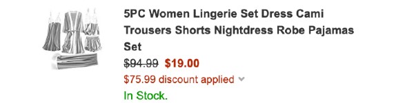 Amazon.com tiene por tiempo limitado estos Set Luorata de 5 Piezas Lingerie a solo $19.00 (Reg. $94.99). Aprovecha y pide los tuyos antes de que se agoten AQUI. Utiliza el código de promoción 8079UGV6 al momento de hacer el checkout. Recuerda que también puedes conseguir el envío gratis con Amazon Prime o realizando una compra de $25.00 o más. No dejes perder esta super oferta!!! Si te interesa esta oferta la consigues AQUI. Esta oferta es válida mientras duren o hasta las 11:59 de hoy 02/23/2020