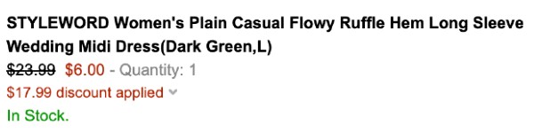 Amazon.com tiene el Traje de Mujer Styleword a solo $6 (Reg. $23.99). Aprovecha y pide el tuyo antes de que se agoten AQUI. El precio regular es $23.99 pero al utilizar el código 75CNUQ63 al momento de hacer el checkout te ahorras $17.99 y terminas pagando solo $6. El envío es gratis con Amazon Prime o realizando una compra de $25.00 o más. Abajo te dejo el enlace para que lo pruebes Gratis por 30 días. Si te interesa esta oferta la consigues AQUI.