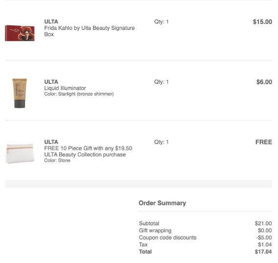 Si te gusta ULTA puedes ahorrar con un nuevo cupón que llegó por email. Verifica tu bandeja de entrada ya que puedes haber recibido un cupón de $5 de descuento en tu compra de $10 en ULTA Beauty, válido tanto en la tienda como en línea. Este cupón vence el 8 de Marzo y es válido en todos los productos a precio regular y en especial. Mira la oferta que te explico mas adelante y ahorra en GRANDE.