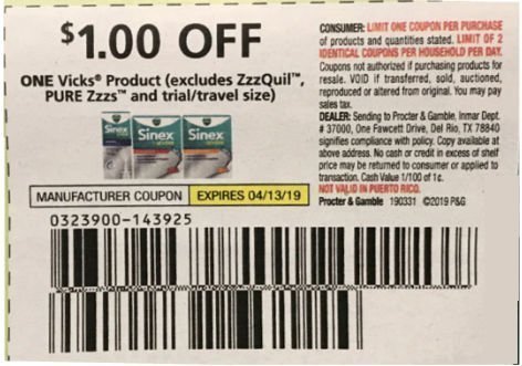 - Usa (1) $1.00/1 Vicks Product from de P&G 3/31/19 (exp 4/13/19)